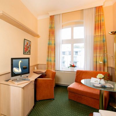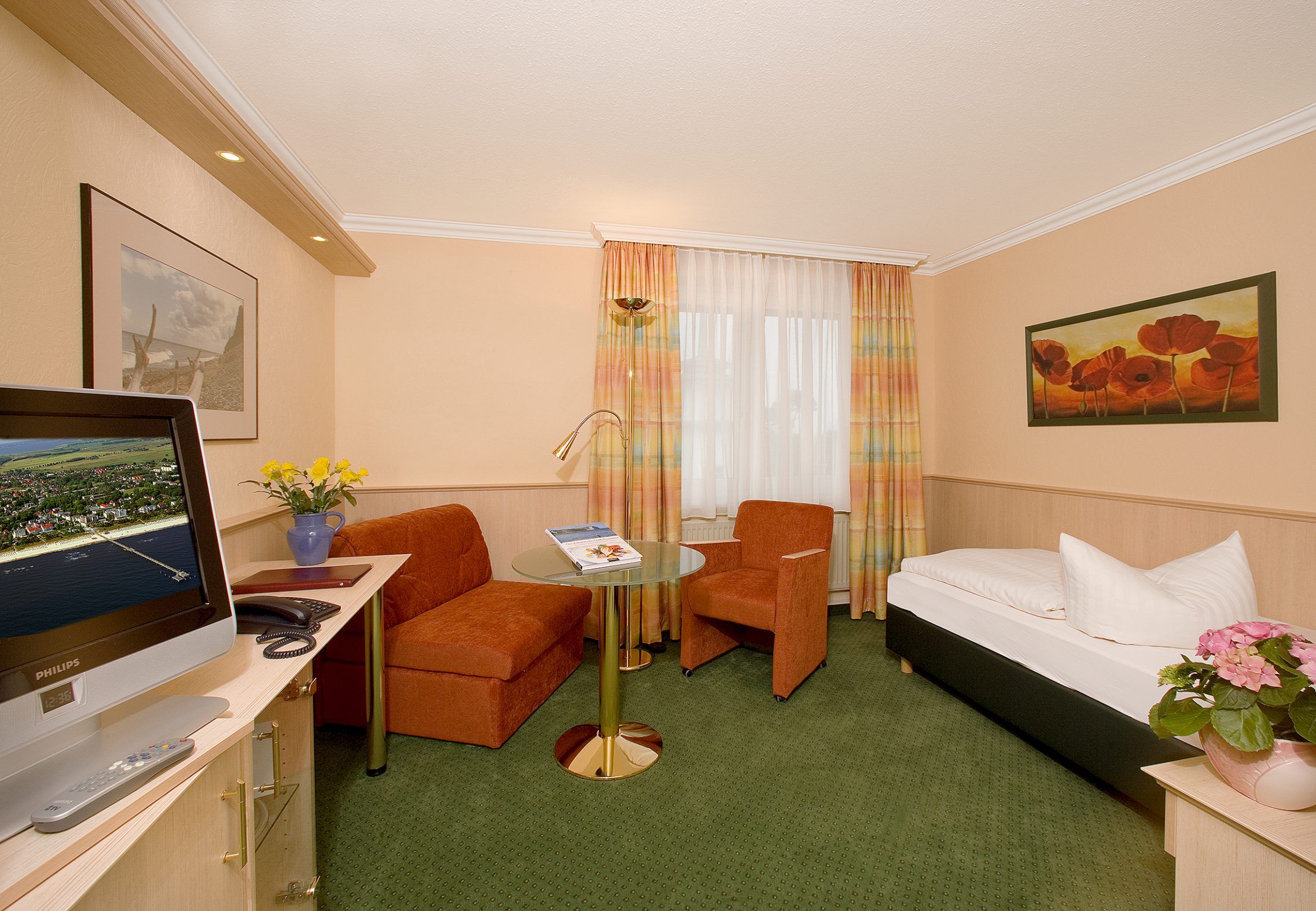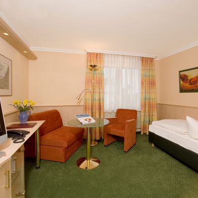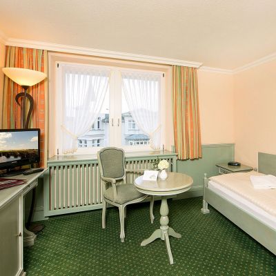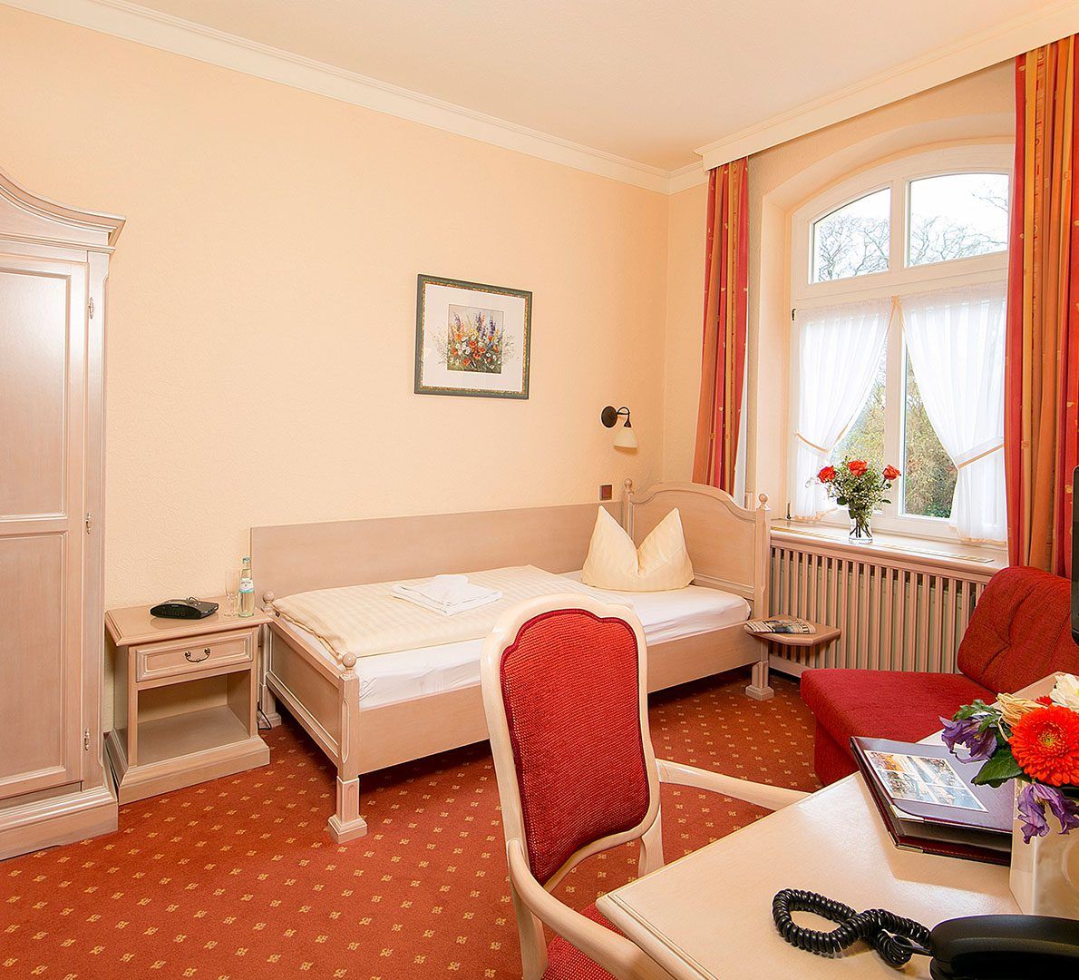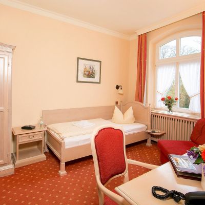 Die verschiedenen Einzelzimmer kommen mal im Landhausstil mit kleiner Sitzecke und ausziehbarem Schlafsessel daher, mal enthalten sie klassische Stilmöbel und große Kleiderschränke.