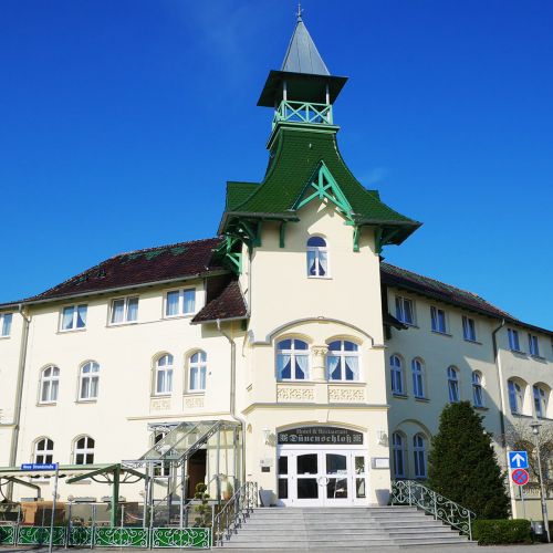 Mit dem Zug: Egal aus welcher Region Deutschlands Sie mit der Bahn angereist kommen, die letzte Etappe ist doch für alle Zinnowitzer Gäste gleich: Ab Greifswald oder Züssow fahren Sie meist mit der UBB (Usedomer Bäderbahn) bis auf die Insel. Vom Bahnhof Zinnowitz sind es noch 1,4 km bis zum Hotel Dünenschloss. Wem es zu Fuß zu weit ist, kann einfach ein Taxi bestellen.