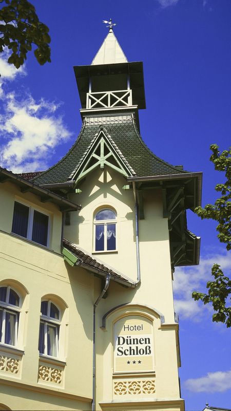 Einst um 1900, als damals größtes Privatfremdenheim Usedoms erbaut, war das Dünenschloss hauptsächlich ein Rückzugsort für Badegäste aus Berlin. In Zeiten der DDR wurde das Haus unter dem Namen Ernst Schneller zum Feriendomizil für die SDAG (Sowjetisch Deutsche Aktiengesellschaft) und später für Urlauber der FDGB (Freier Deutscher Gewerkschaftsbund).