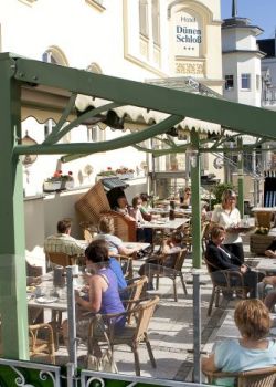 Mit der Wende kam ein neuer Verwalter, daraufhin ein neuer Name und schließlich wir: Das Haus wurde als Pension Usedom von der Treuhand übernommen und bei einer Ausschreibung der Gemeinde Zinnowitz erhielten wir, die Familie Vollrath, den Zuschlag zum Kauf. Nach dem ersten Jahr, in dem unsere Gäste unter einfachen Bedingungen (Waschbecken im Zimmer, aber WC und Dusche auf dem Flur) untergebracht waren, eröffneten wir 1993 das Hotel. Es erhielt eine Rundumerneuerung und seinen ursprünglichen Namen Dünenschloss.