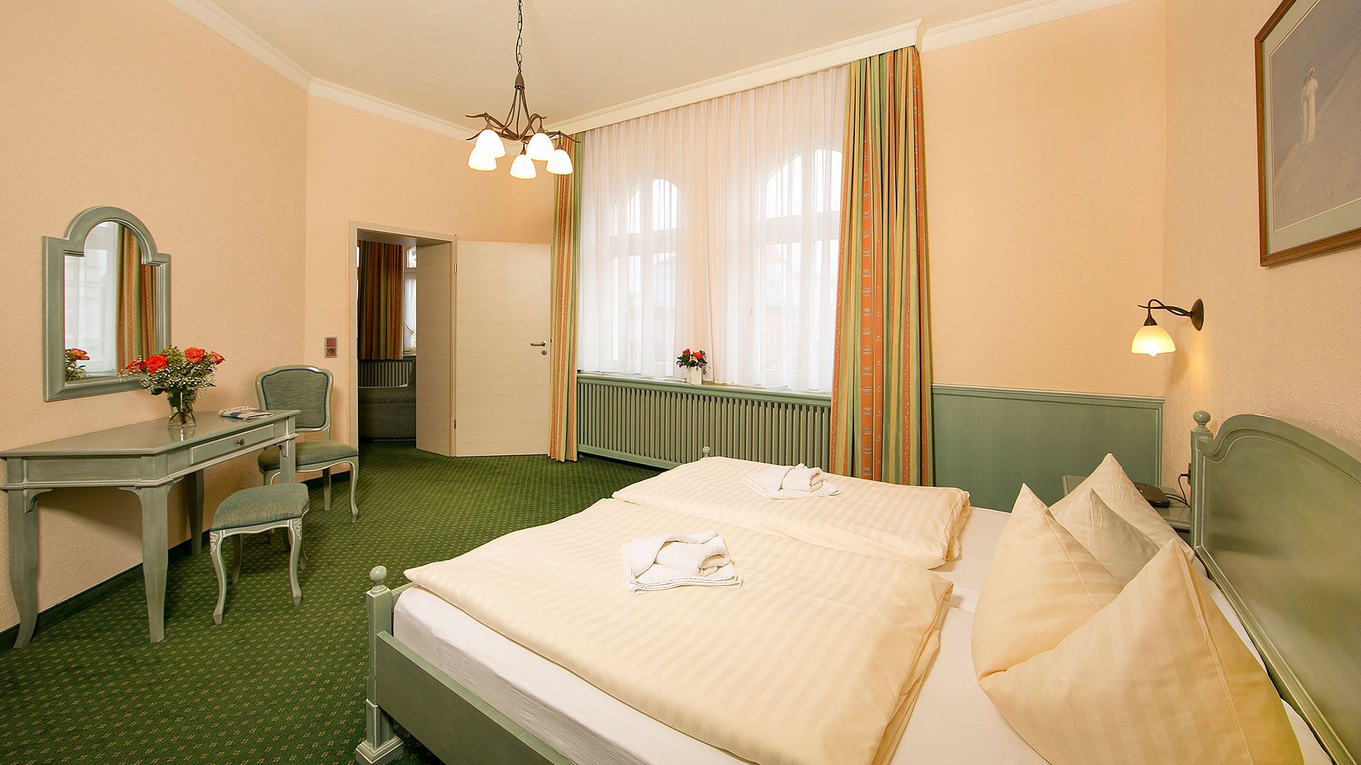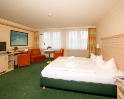 Im Dünenschloss ist jedes der 31 Zimmer individuell und mit dem Sinn für das gewisse Etwas eingerichtet. Egal, ob helles Holz und warme Farben im Landhausstil, oder klassische Stilmöbel in der Tradition der frühen Geschichte des Hauses: